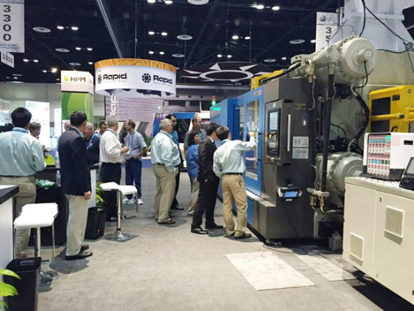 It is the second time that HPM North America Corporation which is a member of Yizumi Group has participated in NPE since 2012. HPM’s booth, bearing a brand-new company logo, covered an area of 3200 square feet and was located at the main pathway in West Hall where well-known international injection molding machine manufacturers gathered. Yizumi showed three powerful machines at its booth. The first one was HSⅡ1100 two-platen injection molding machine, which was a large-tonnage machine that was applied to the production of high-end molding parts in automotive, electric appliance and other fields. The second one was HSE260 all-electric injection molding machine which had outstanding performance in precision, efficiency, energy consumption, environmental protection and safety demonstrated molding of spoons at the booth. Another showcased machine was HST 320 which was a universal model designed according to ANSI SPI B151.1: 2007 standard with a TUV certificate. This machine ran smoothly with high reliability and was applied to electronics, electric appliance, communication, toy, light fixture, packaging and other areas. It also produced plastic Frisbees on site.