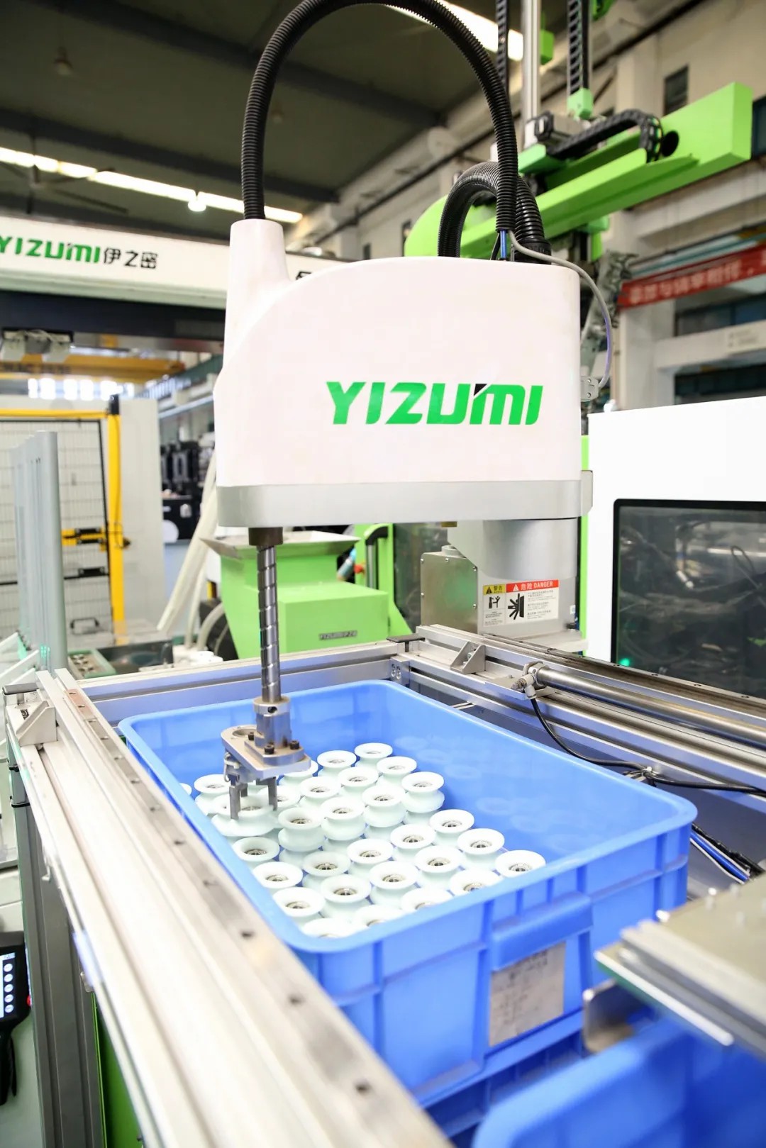 This is YIZUMI’s new integrated solution for automated roller production. The equipment production system includes raw materials, molds, new processes, integrated control of peripheral devices, injection molding machine, automation units, industrial interconnection, and other technologies that form the entire plastic processing ecology.
