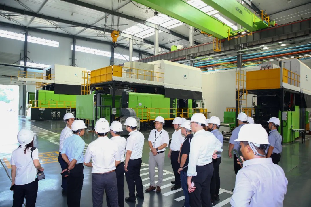 在儀式開始前,HICOM一行參觀了全球創(chuàng)新中心及五沙第三工廠,深入了解了伊之密的發(fā)展歷程與綜合實(shí)力。在隨后的交付儀式上,雙方共同回顧了項(xiàng)目合作的歷程,并展望了未來的發(fā)展方向。